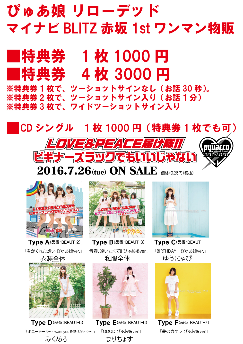 ※夜のLIVEプラスに各種ワンマンチケットをお持ちいただくとぴゅあ娘リローデッド特典券1枚進呈